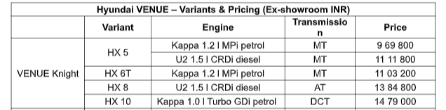 Hyundai हमेशा से फीचर्स के मामले में आगे रही है, और Knight Edition भी इसका अपवाद नहीं है।