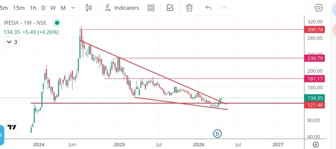 अगर चार्ट की बात करें, तो IREDA का ट्रेंड अभी पॉजिटिव जरूर है, लेकिन कुछ अहम लेवल्स पर नजर रखना जरूरी है।