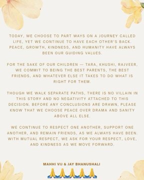 JAY BHANUSHALIऔर MAHHI VIJका तलाक एक खबर से कहीं ज्यादा है। यह एक सामाजिक संदेश है—कि अलगाव भी गरिमा, समझ और जिम्मेदारी के साथ हो सकता है।