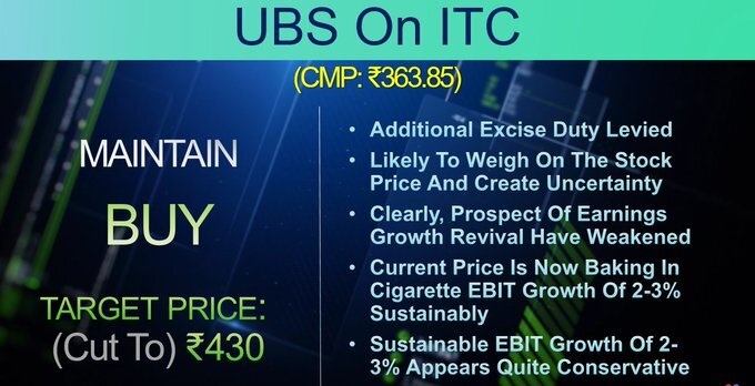 सरकार द्वारा सिगरेट और तंबाकू उत्पादों पर अतिरिक्त कर Excise Duty बढ़ाने की घोषणा ITC के लिए सबसे बड़ा झटका साबित हुई । ITC की आय का बड़ा हिस्सा आज भी सिगरेट बिज़नेस से आता है।