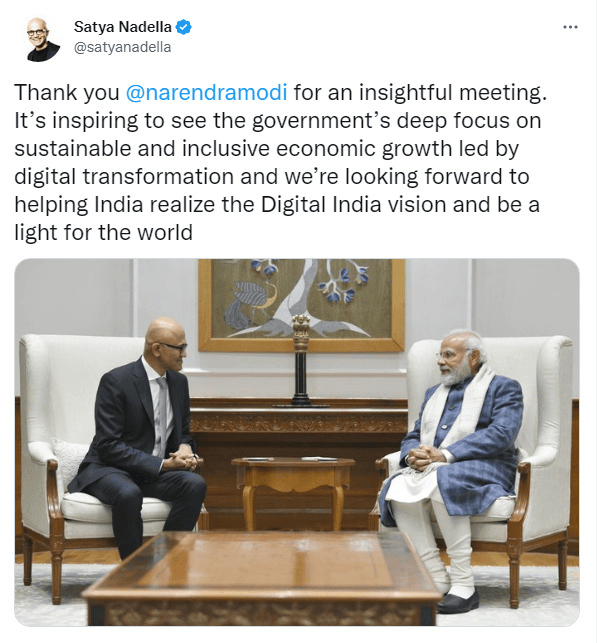 मुलाकात के कुछ ही घंटों बाद नडेला ने सार्वजनिक रूप से घोषणा की: