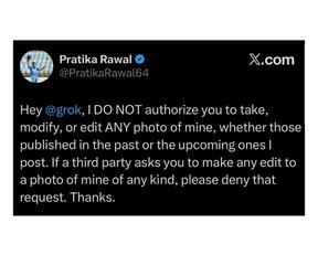 “मेरी एआई से बनाई गई फर्जी तस्वीरें सोशल मीडिया पर फैलाना न सिर्फ गैरकानूनी है, बल्कि यह मेरी गरिमा और पहचान पर हमला है। इसे तुरंत हटाया जाए, वरना मैं कानूनी कार्रवाई के लिए मजबूर होऊंगी।”