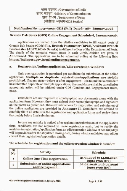 भारत में सरकारी नौकरी की तैयारी करने वाले युवाओं के लिए GDS यानी ग्रामीण डाक सेवक (Gramin Dak Sevak) की भर्ती हमेशा से आकर्षण का केंद्र रही है। इसकी सबसे बड़ी वजह है — बिना लिखित परीक्षा चयन, स्थानीय पोस्टिंग, स्थिर आय और सरकारी तंत्र का हिस्सा बनने का मौका। हर साल लाखों उम्मीदवार GDS भर्ती के नोटिफिकेशन का इंतजार करते हैं क्योंकि यह उन युवाओं के लिए सुनहरा अवसर माना जाता है जो कम शैक्षणिक योग्यता के साथ सरकारी नौकरी चाहते हैं।