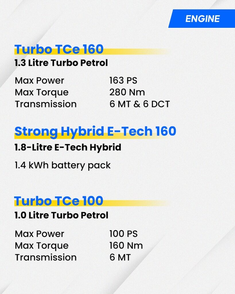 रेनो ने इसमें 1.2L टर्बो पेट्रोल इंजन के साथ हाइब्रिड टेक्नोलॉजी दी है। इसका मतलब: