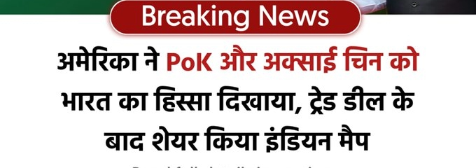 भारत-US ट्रेड डील पर अमेरिका के व्यापार प्रतिनिधि कार्यालय ने जो भारत का नक्शा दिखाया है, उसमें पूरा (POK) जम्मू-कश्मीर, अक्साई चीन भारत का हिस्सा नजर आ रहा है, अलग से कोई लाइन… pic.twitter.com/pZiEdljj4v