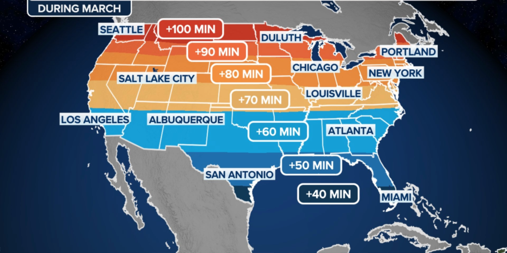 हाल ही में 8 मार्च की रात को संयुक्त राज्य अमेरिका में फिर से Daylight Saving Time लागू हो गया। इसके तहत रात 2 बजे घड़ियों को एक घंटा आगे बढ़ाकर 3 बजे कर दिया गया। यानी लोगों की नींद का एक घंटा कम हो गया, लेकिन इसके बदले उन्हें शाम के समय अधिक देर तक रोशनी मिलेगी।